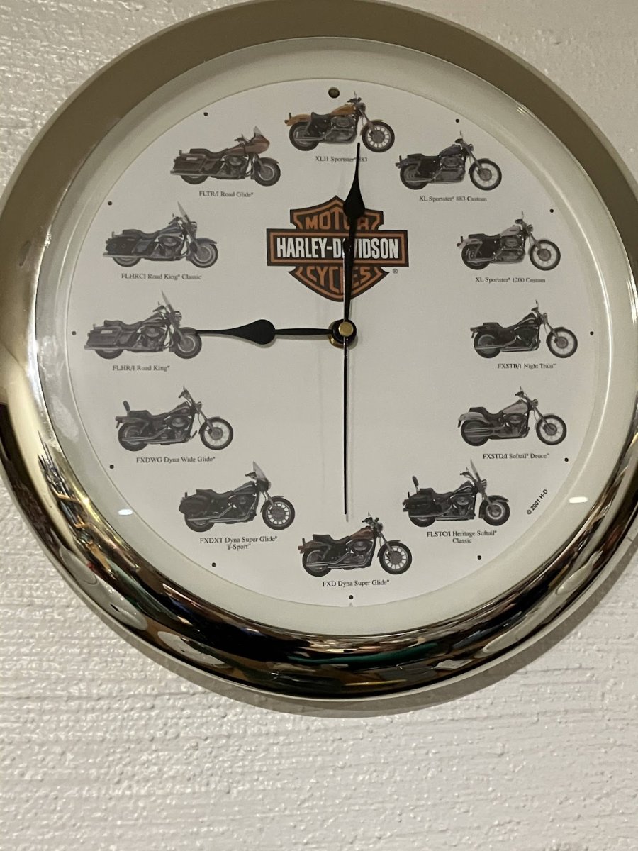 November 3Nov 3 Saw this unusual clock on a friend's wall It actually chimes on the hour over each model of Harley with the individual engine sound.
